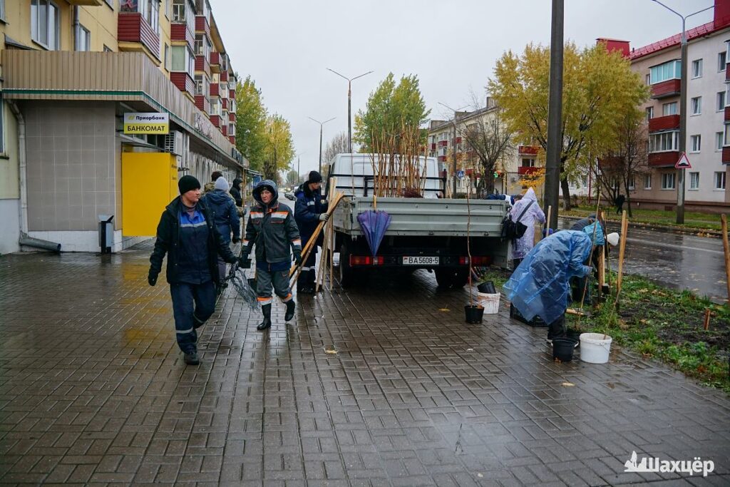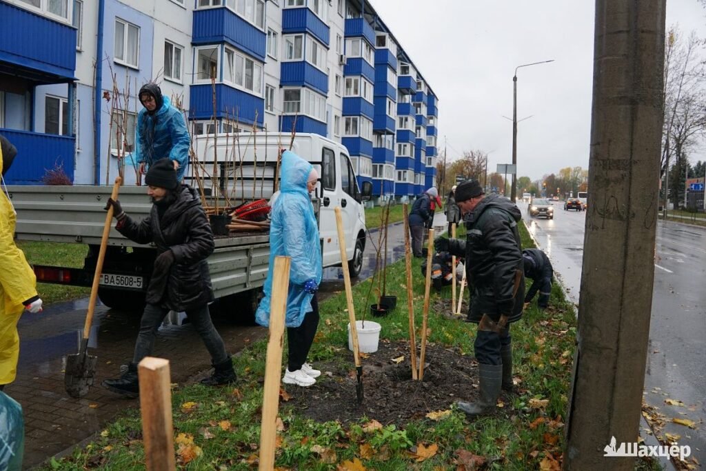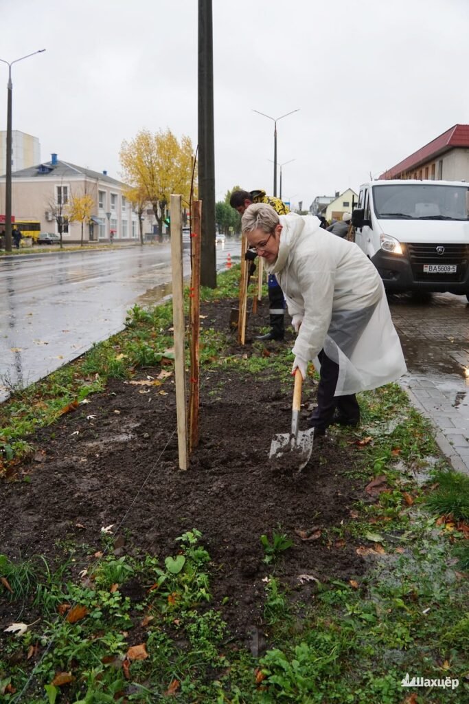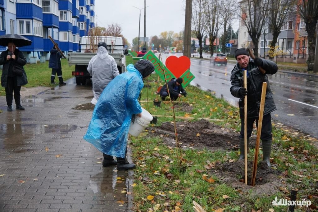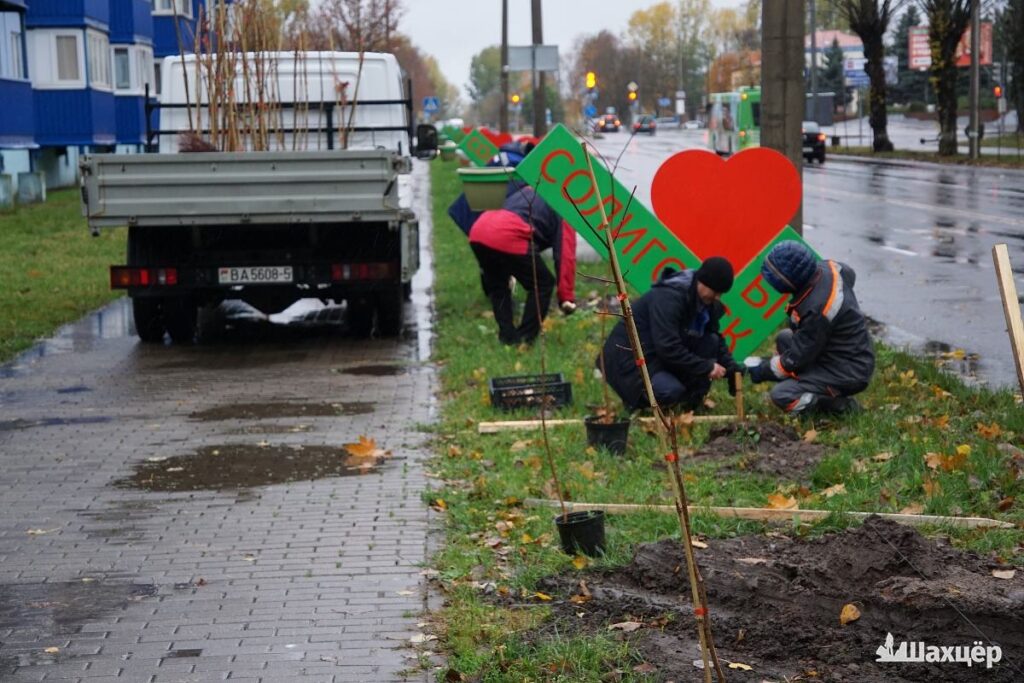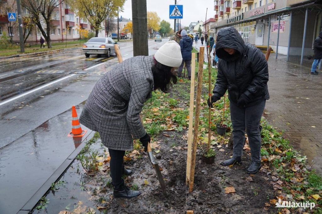 В озеленении улицы приняли участие руководство Солигорского райисполкома, руководители и представители всех отделов райисполкома, а также представители профсоюза АПК.