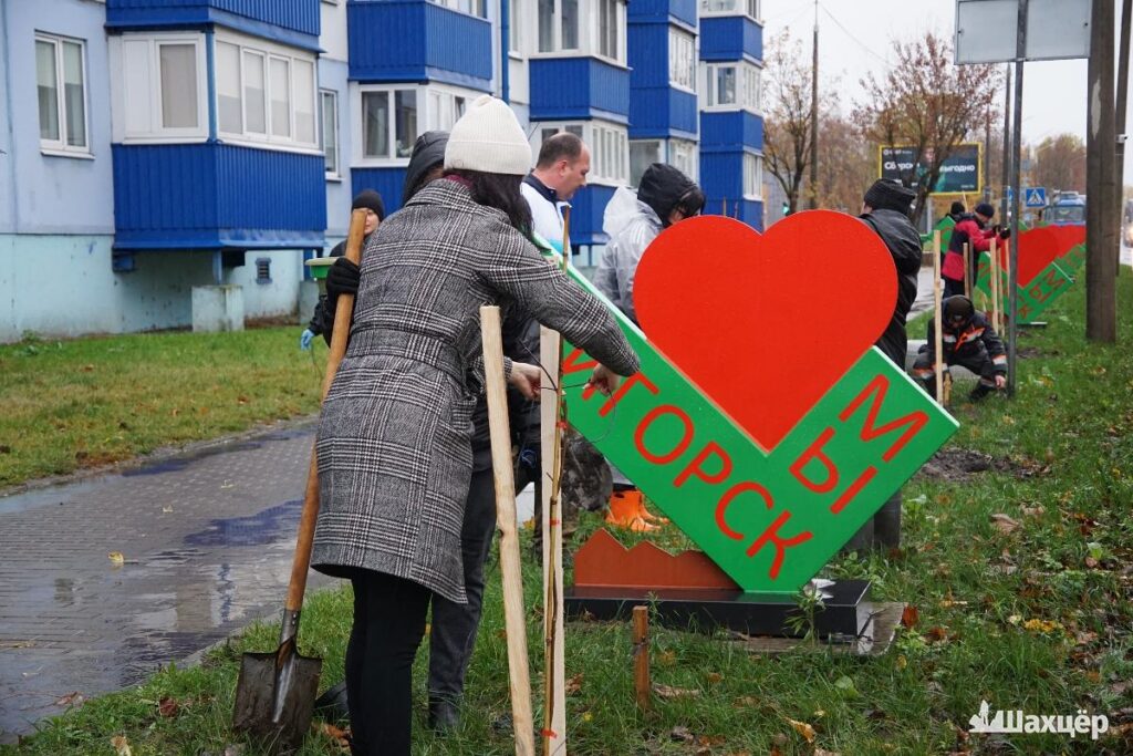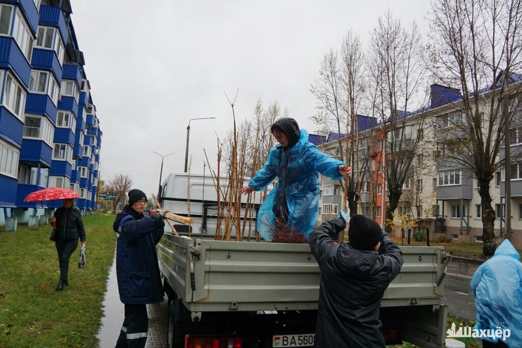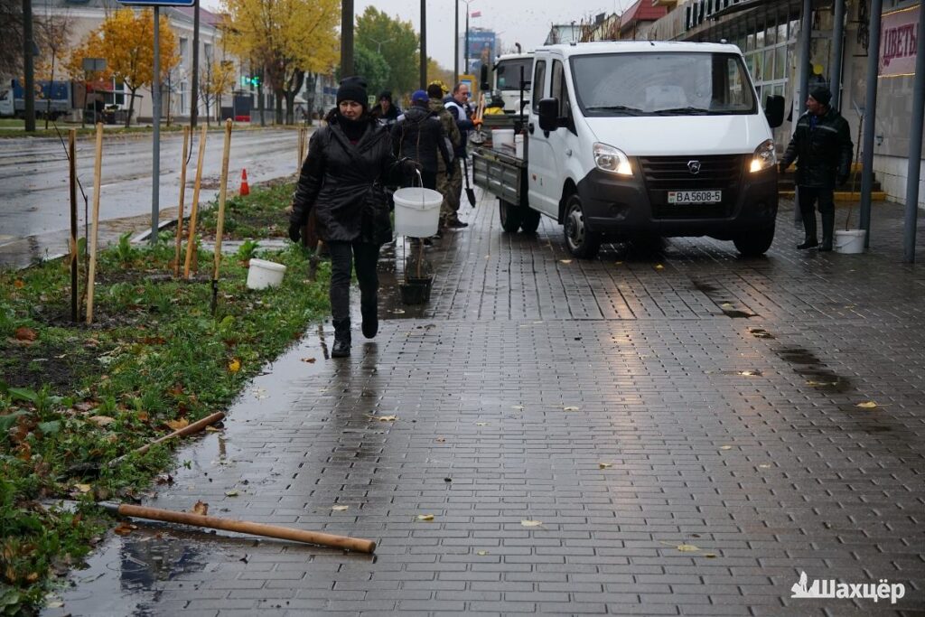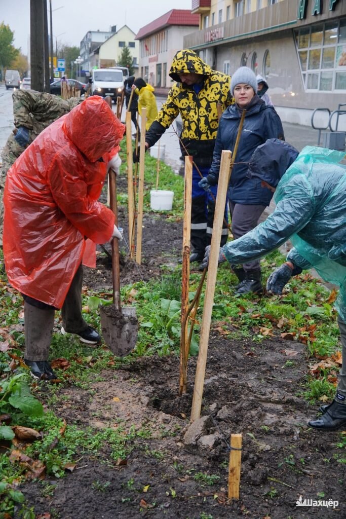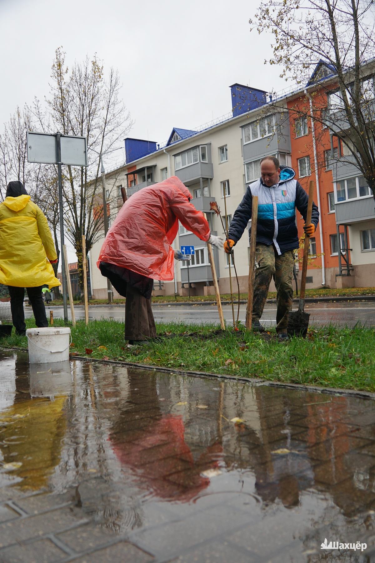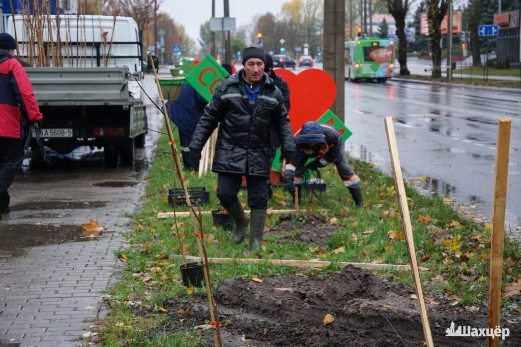 В озеленении улицы приняли участие руководство Солигорского райисполкома, руководители и представители всех отделов райисполкома, а также представители профсоюза АПК.