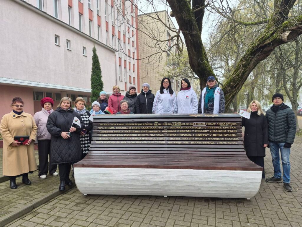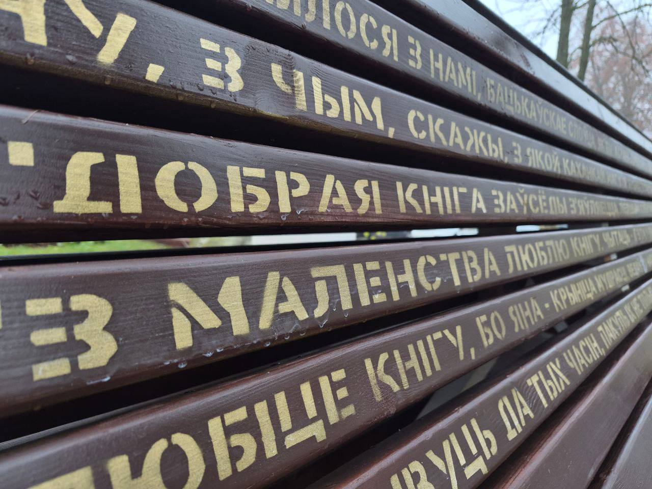 Возле центральной библиотеки по инициативе ОО и партии «Белая Русь» установлена скамейка в форме раскрытой книги с цитатами белорусских классиков.