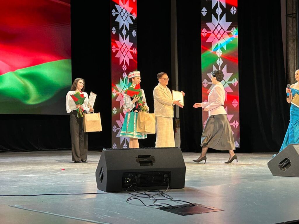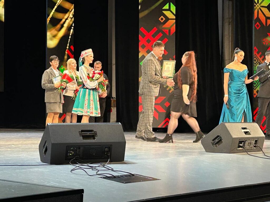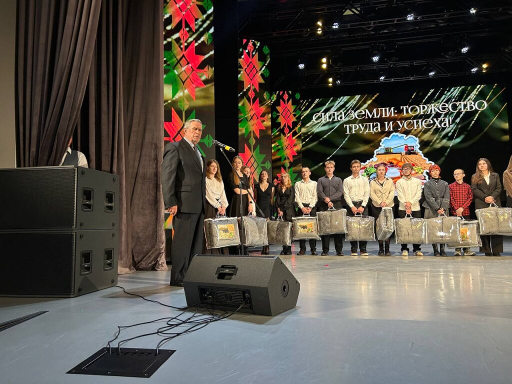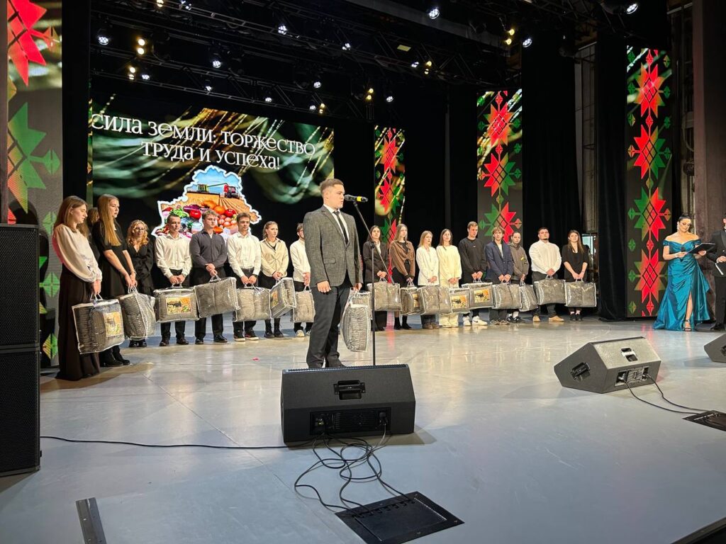Со сцены звучали напутственные слова для молодых специалистов от ветерана труда Король Александра и молодого специалиста инженера, заведующего машинным двором ОАО «Солигорский райагросервис» Александра Насеня.