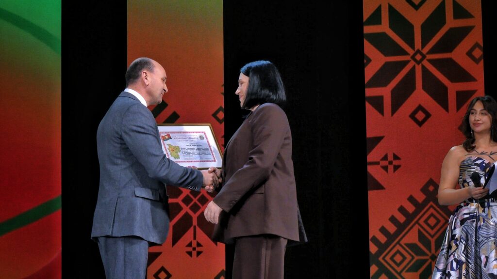 Глава района вручил генеральному директору «Слуцкого сыродельного комбината» сувенир, олицетворяющий Солигорский район, и вручил награды работникам общества.