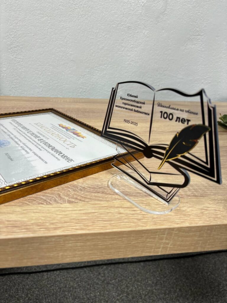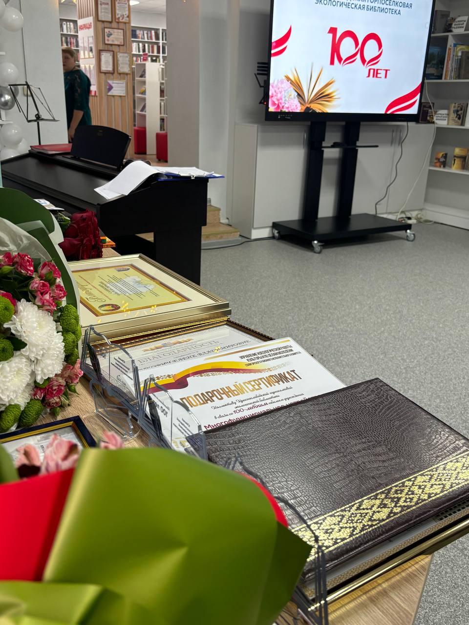 Кроме того, учреждению вручили сертификат на мультиборд, что уже доставили в библиотеку (на нем и показали презентацию о 100-летней истории), а также благодарности работникам предприятия.