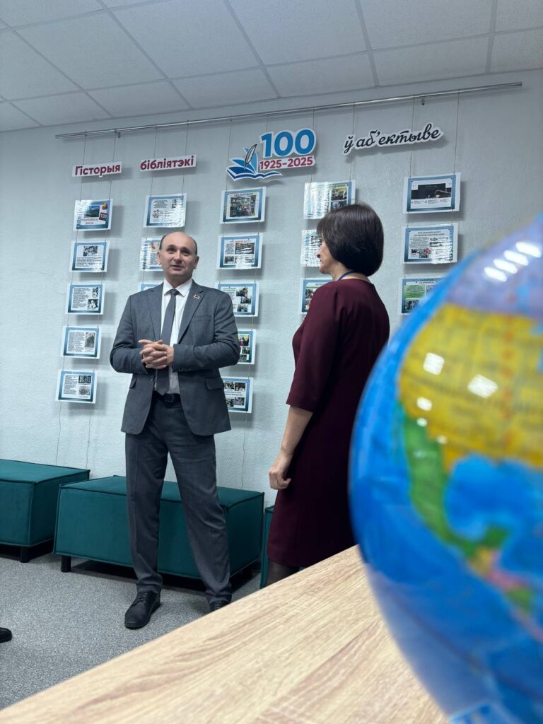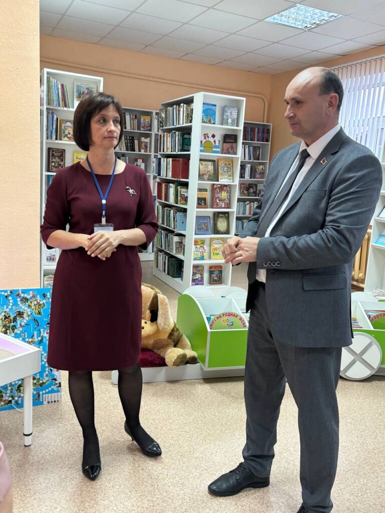 Главе района рассказали, чем сегодня живет библиотека после масштабного ремонта. Показали центр социально-правовой информации, секцию для детей, экологический уголок, «Краязнаўчы куток» (где рассказали об уникальной базе данных ветеранов и редких книгах). В честь открытия краеведческого уголка была торжественно перерезана лента.
