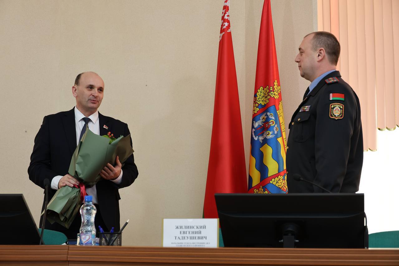 Сегодня в Солигорском райисполкоме начальник УВД Миноблисполкома Андрей Любимов представил нового начальника Солигорского РОВД полковника милиции Евгения Жилинского председателю исполкома Анатолию Лодыга, руководителям управлений и отделов, а также представителям силового блока района.