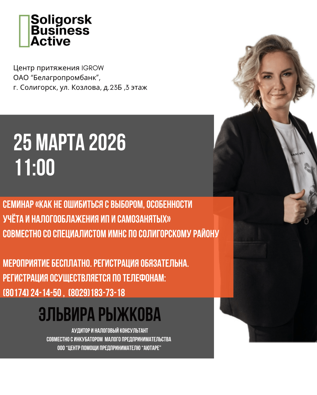 О проведении семинара для индивидуальных предпринимателей и самозанятых «Как не ошибиться с выбором, особенности учета и налогооблажения»