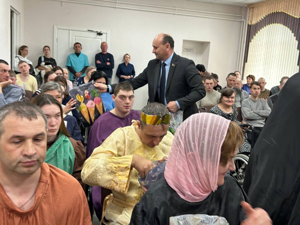Благотворительная акция «Подари радость ближнему» стала хорошей пасхальной традицией, которая направлена на заботу о наших ближних. Глава района Анатолий Лодыга и благочинный Солигорского церковного округа протоиерей Алексей Шауро заглянули в гости к постояльцам Краснослободского социального пансионата «Доверие».