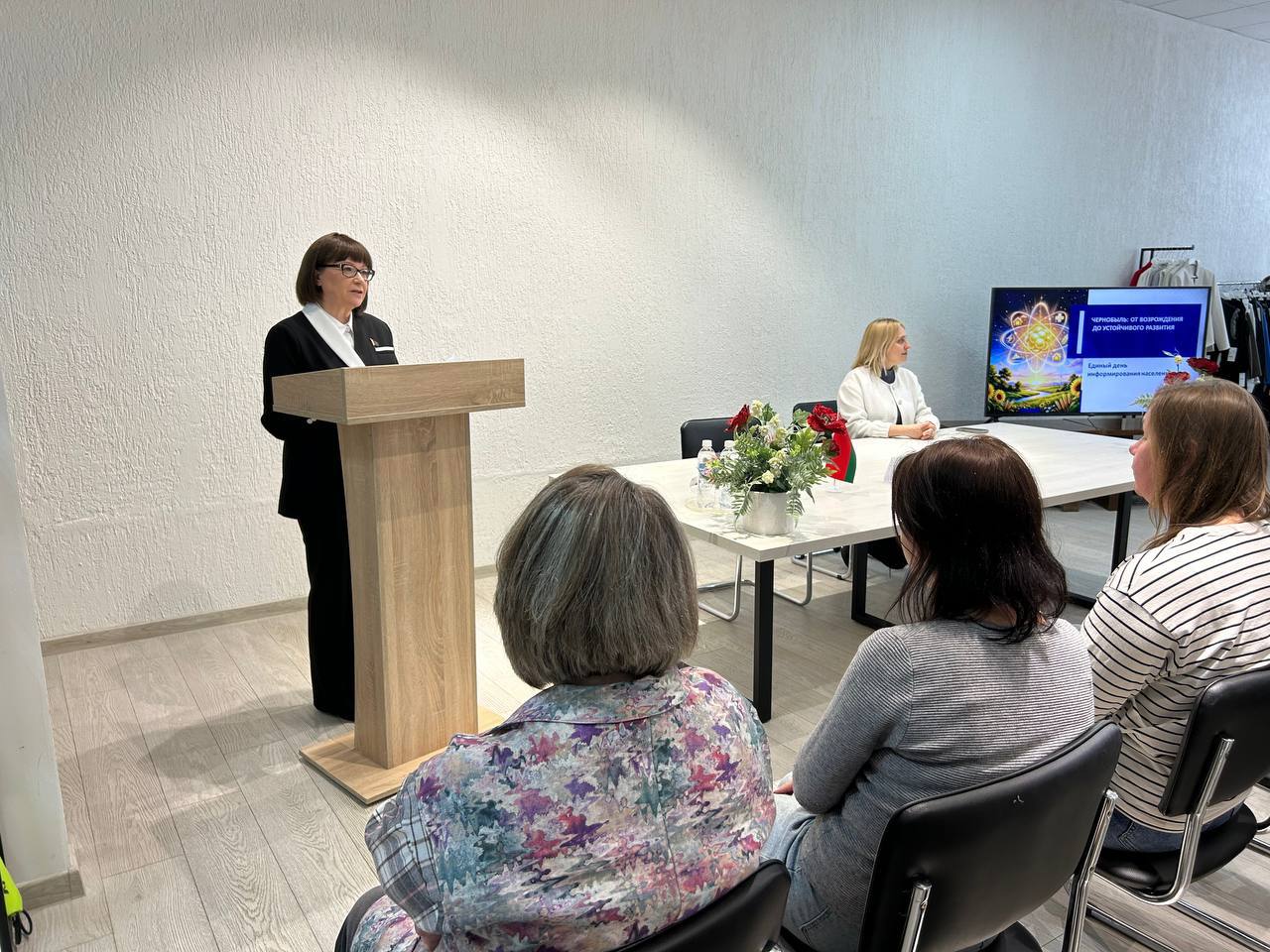 От трагедии на ЧАЭС к развитию атомной энергетики. Основную тему Единого дня информирования и ряд актуальных вопросов детально осветила работникам швейного предприятия «Калинка» председатель комитета по труду, занятости и социальной защите Минского облисполкома Тамара Красовская.